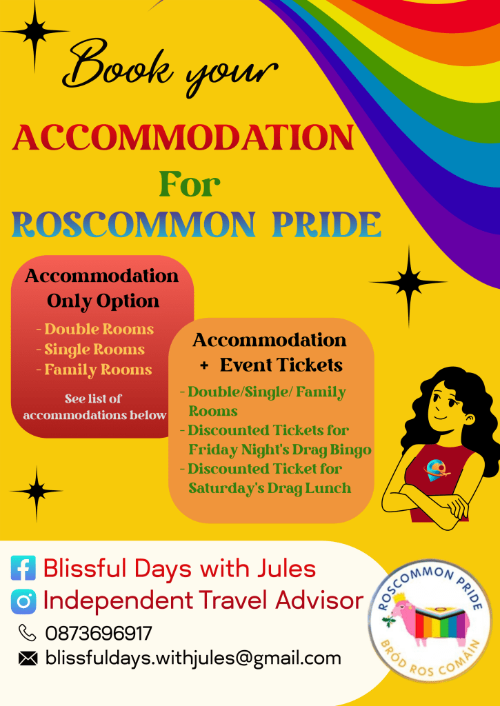 Jules is delighted to take care of the tourism side of Roscommon Pride 2025 and she’s waiting to hear from you!