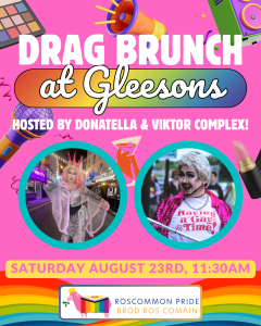 What better way to start the Saturday of Pride than with a Drag Brunch? Join us in Gleeson’s on Saturday August 23rd.